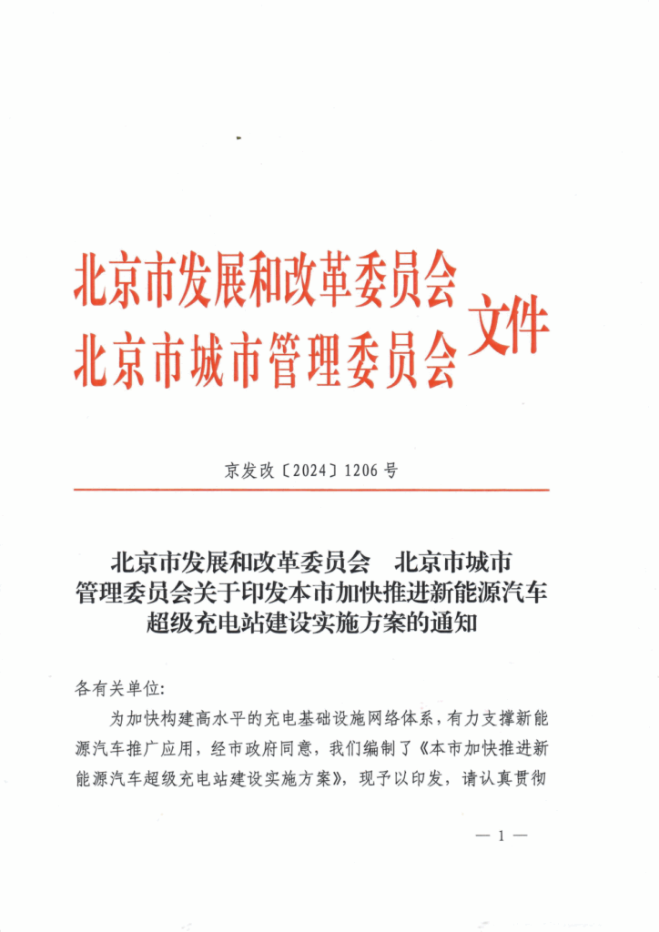 充电设施|北京市发展和改革委员会 北京市城市管理委员会关于印发本市加快推进新能源汽车超级充电站建设实施方案的通知
